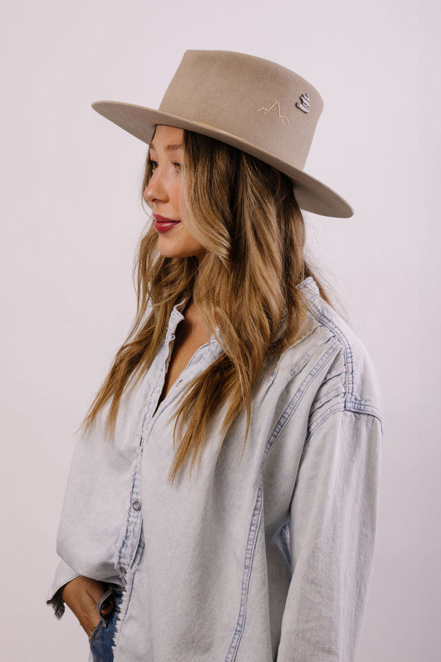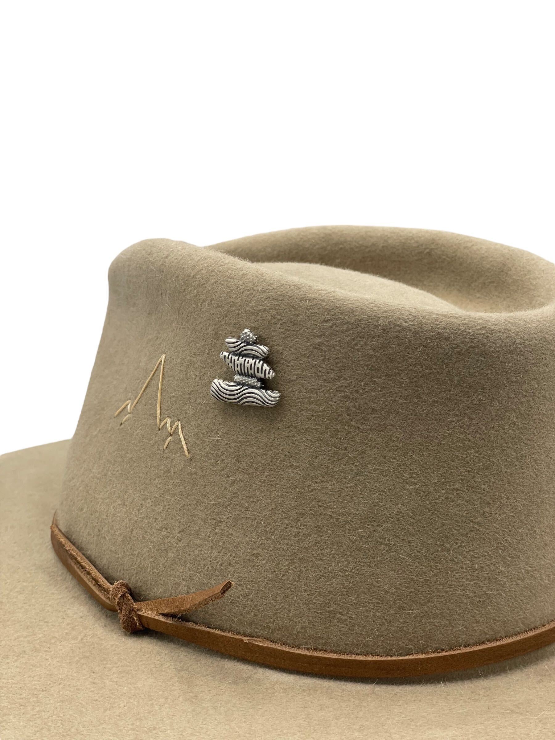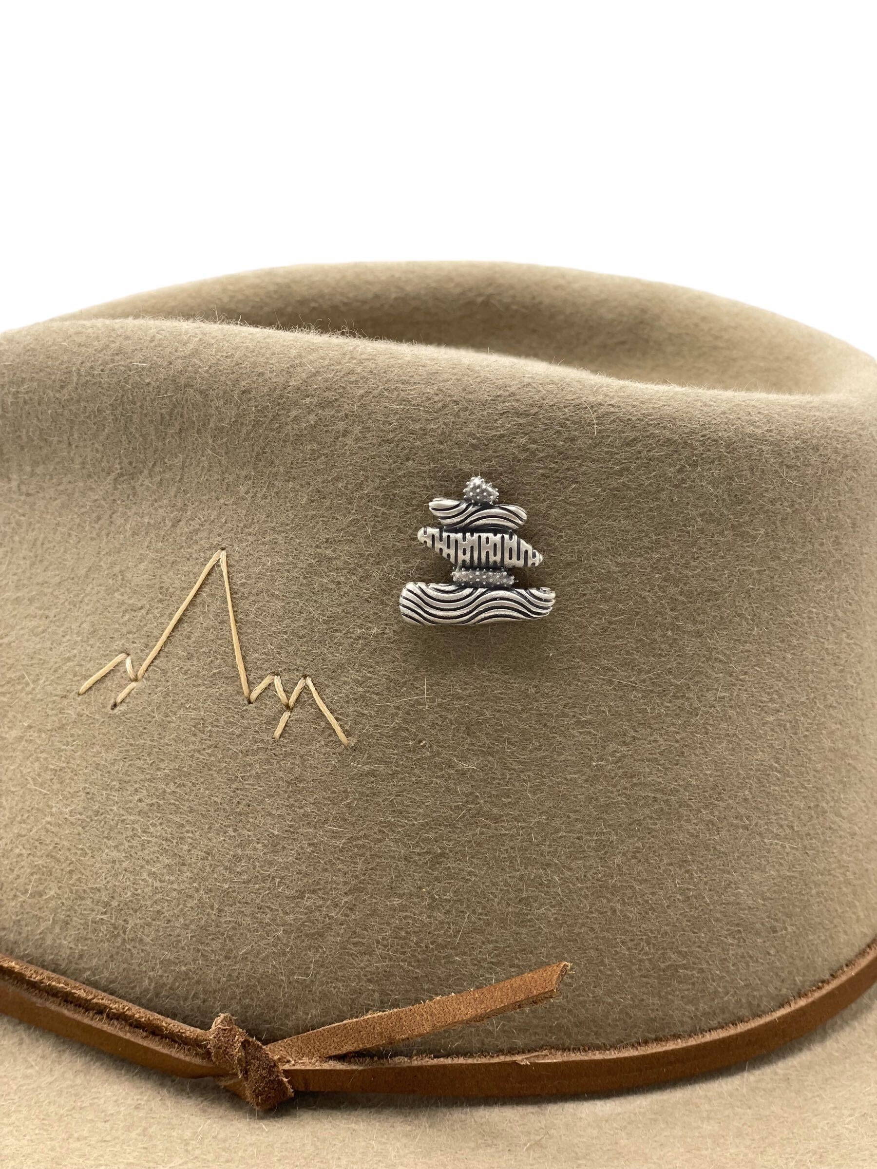 As part of The Cloudveil Collection, the hatpin is of The Cloudveil’s signature Cairn (pile of stones), a symbol often used by hikers to mark trails – so travelers never lose their way.