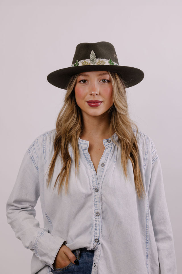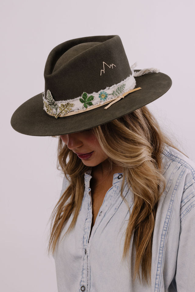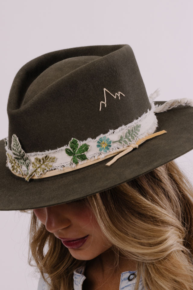 Embroidered band pictured on western willow and bone hats. Sold separately.