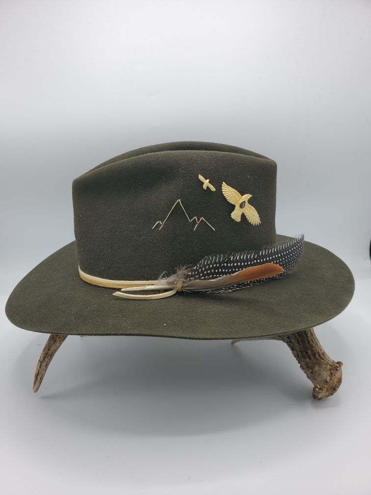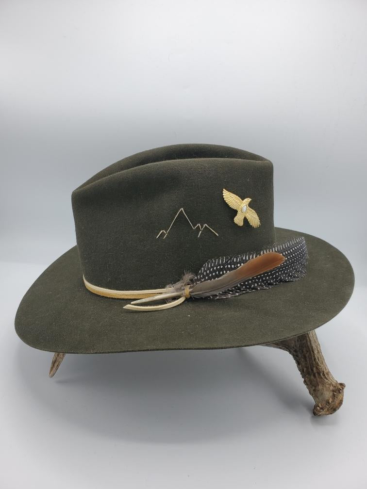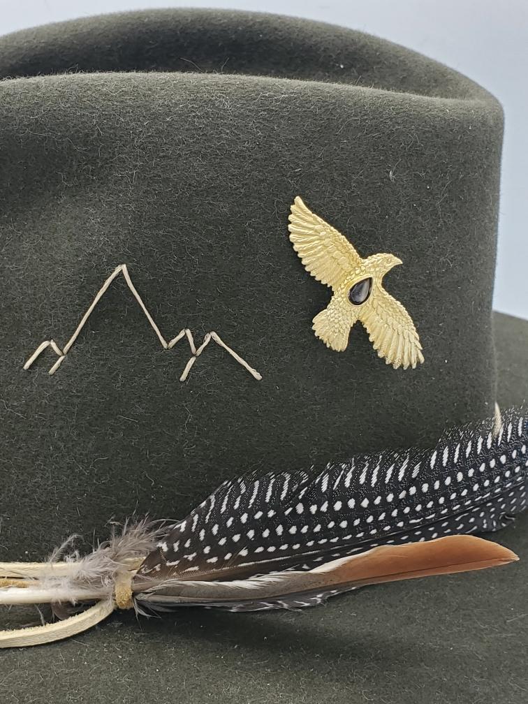 Carved and cast large feather hawk in sterling silver and gold plated