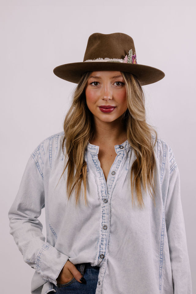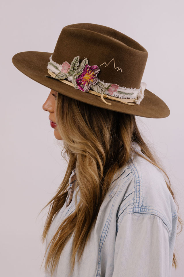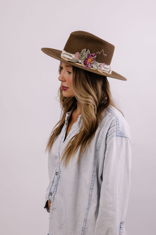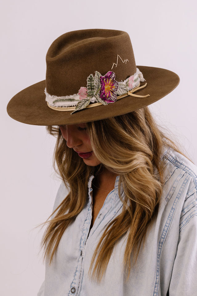 Embroidered band pictured on Western Whiskey hat. Sold separately.
