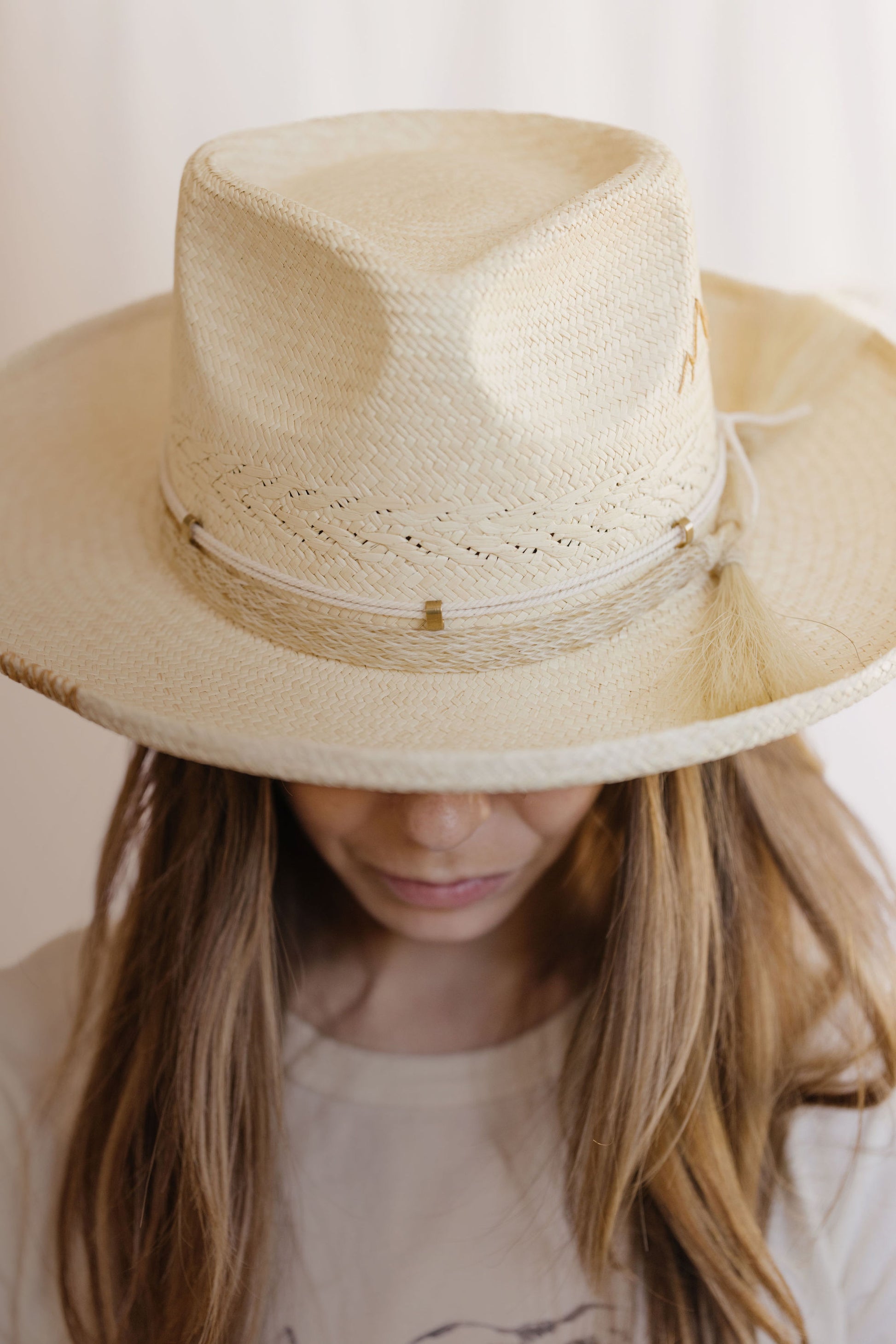 Teardrop crown, natural horsehair band