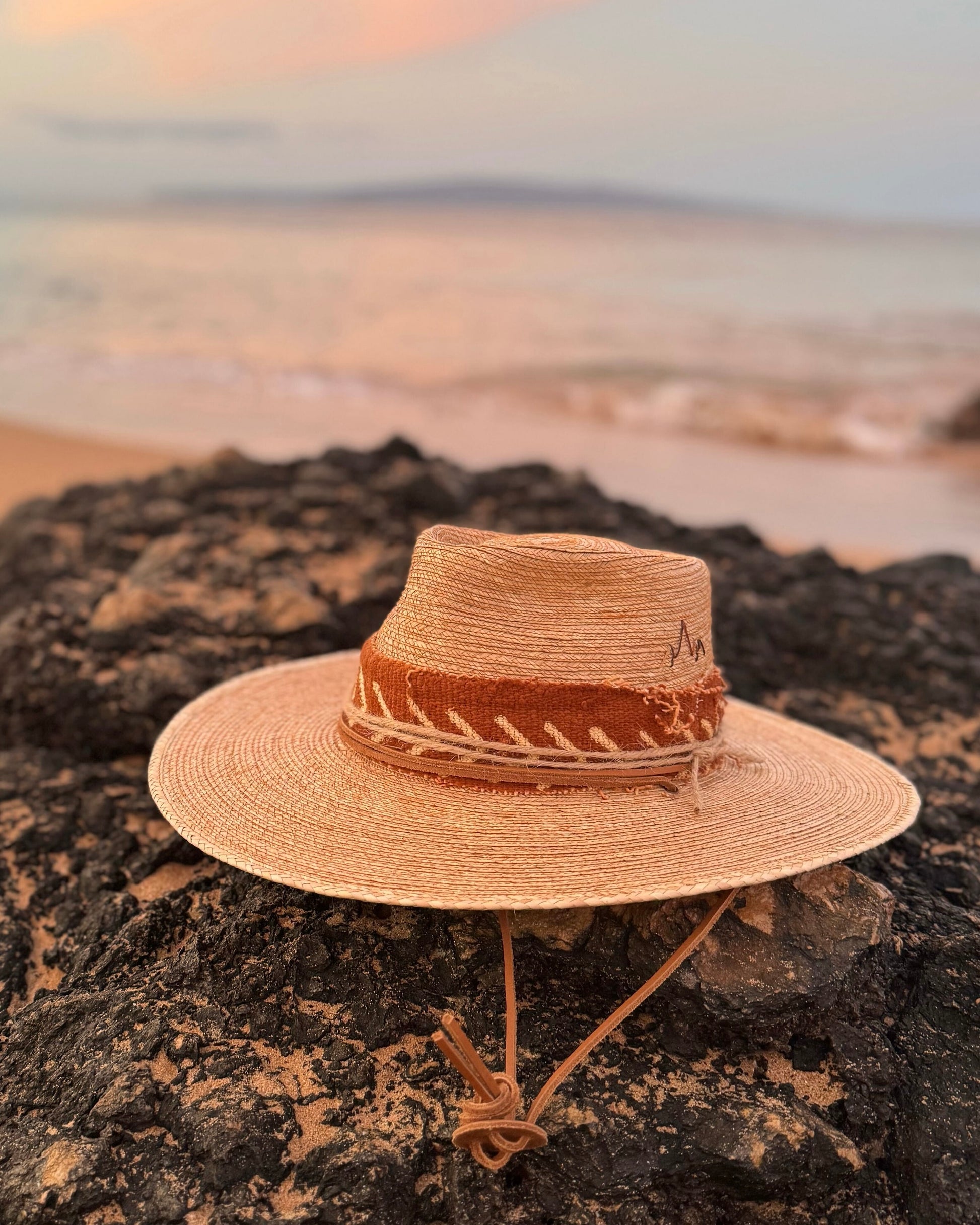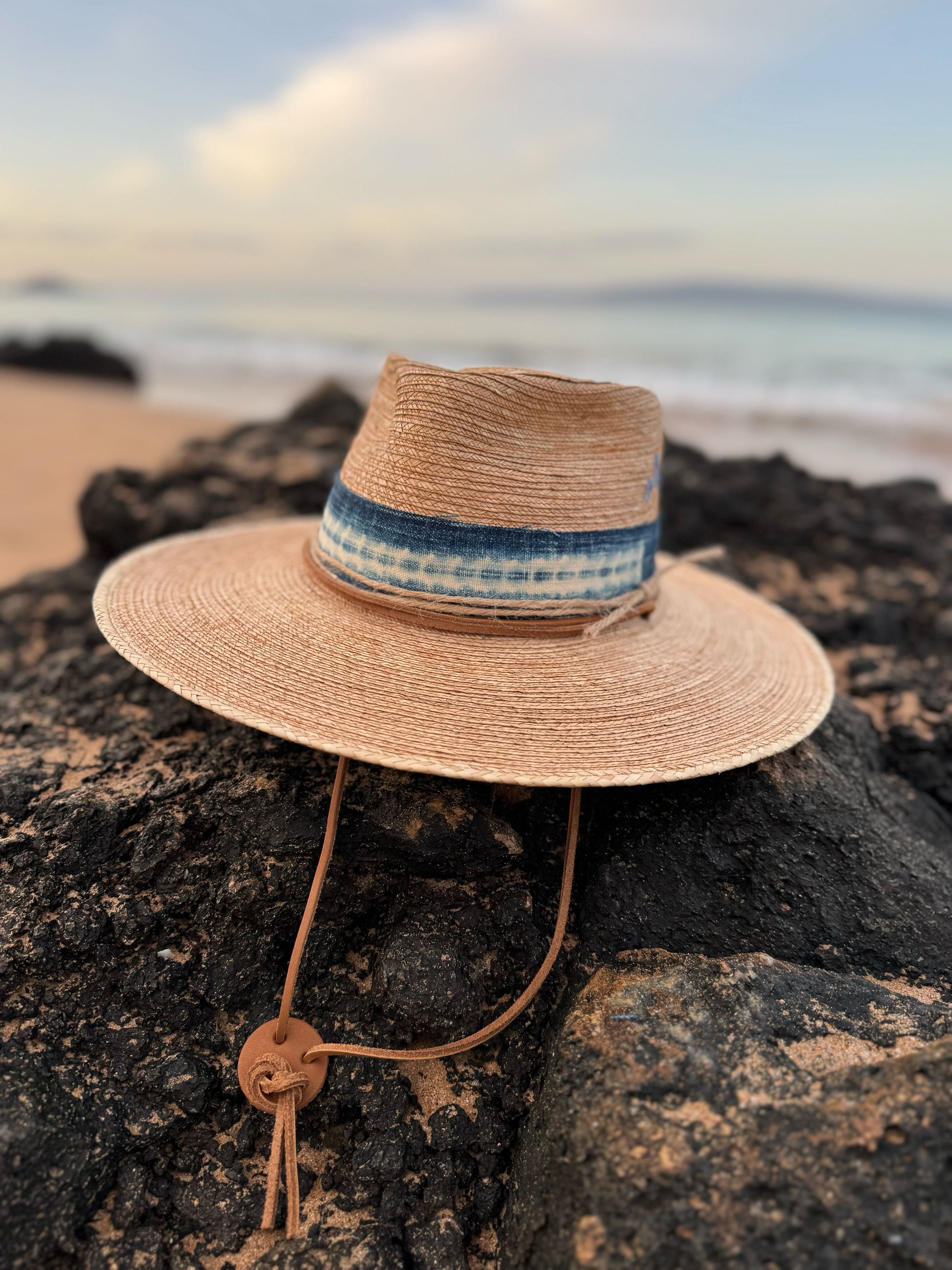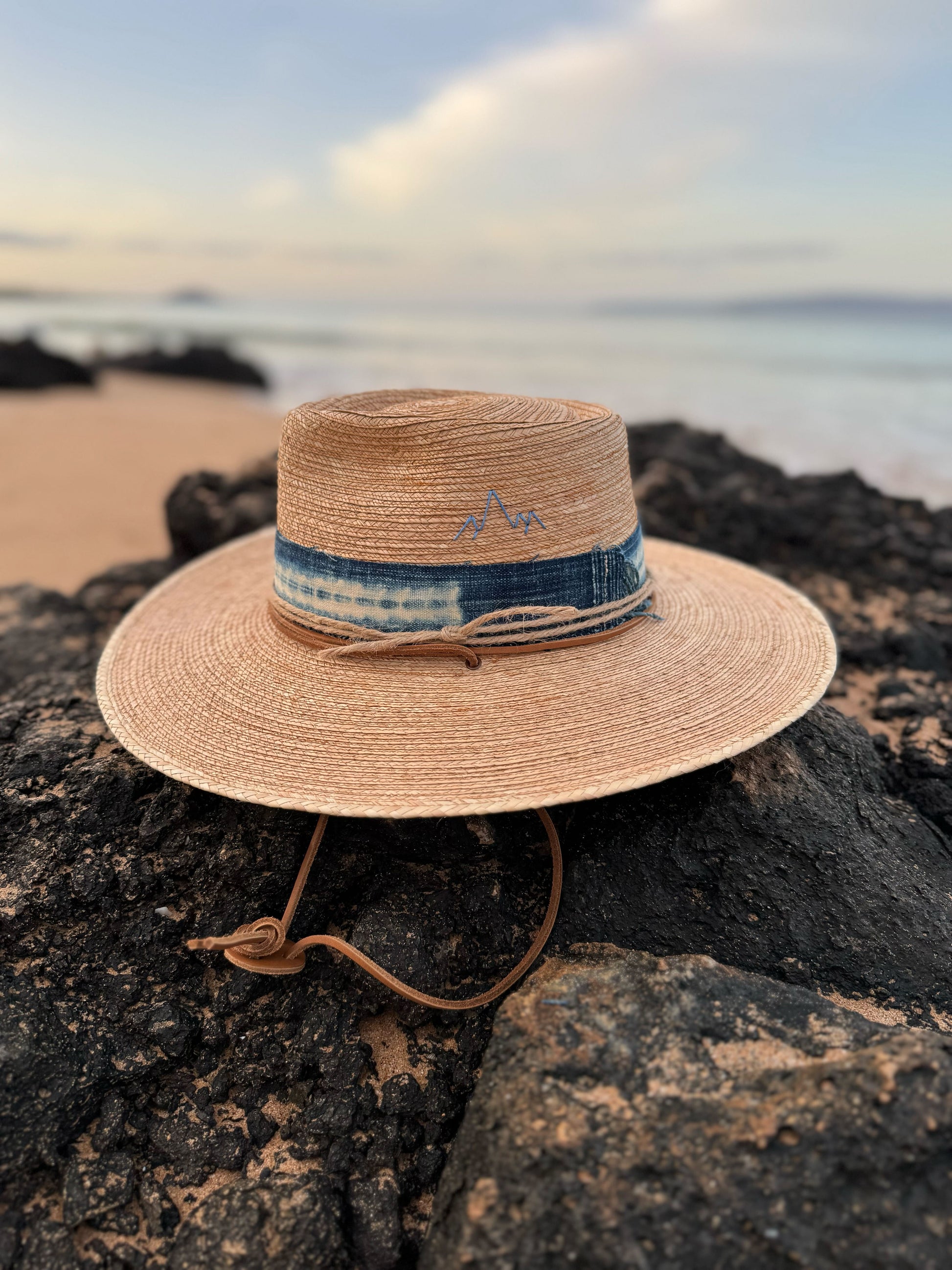 This season our hats are accented with indigo or rust mud cloth and twine accents.