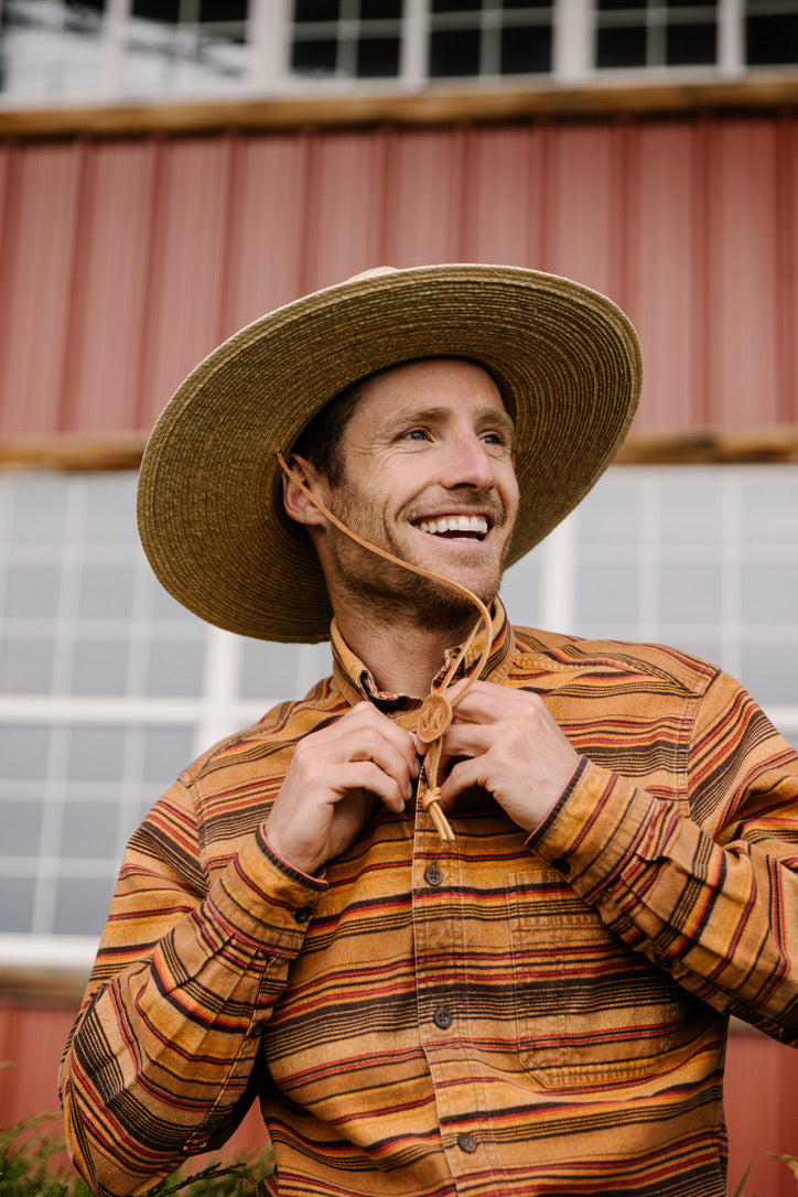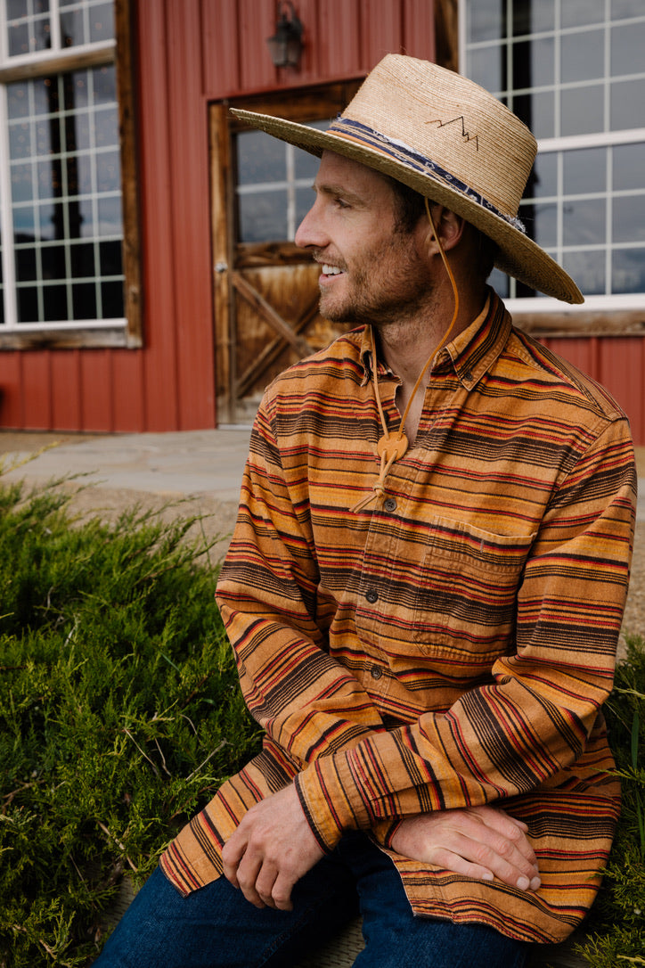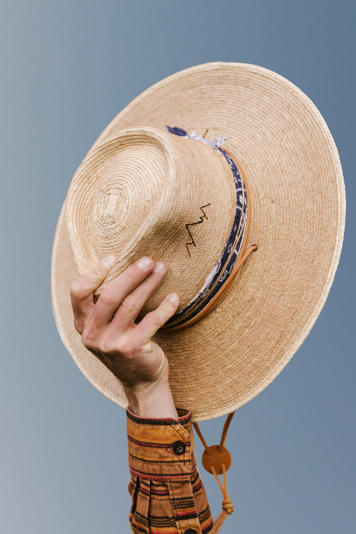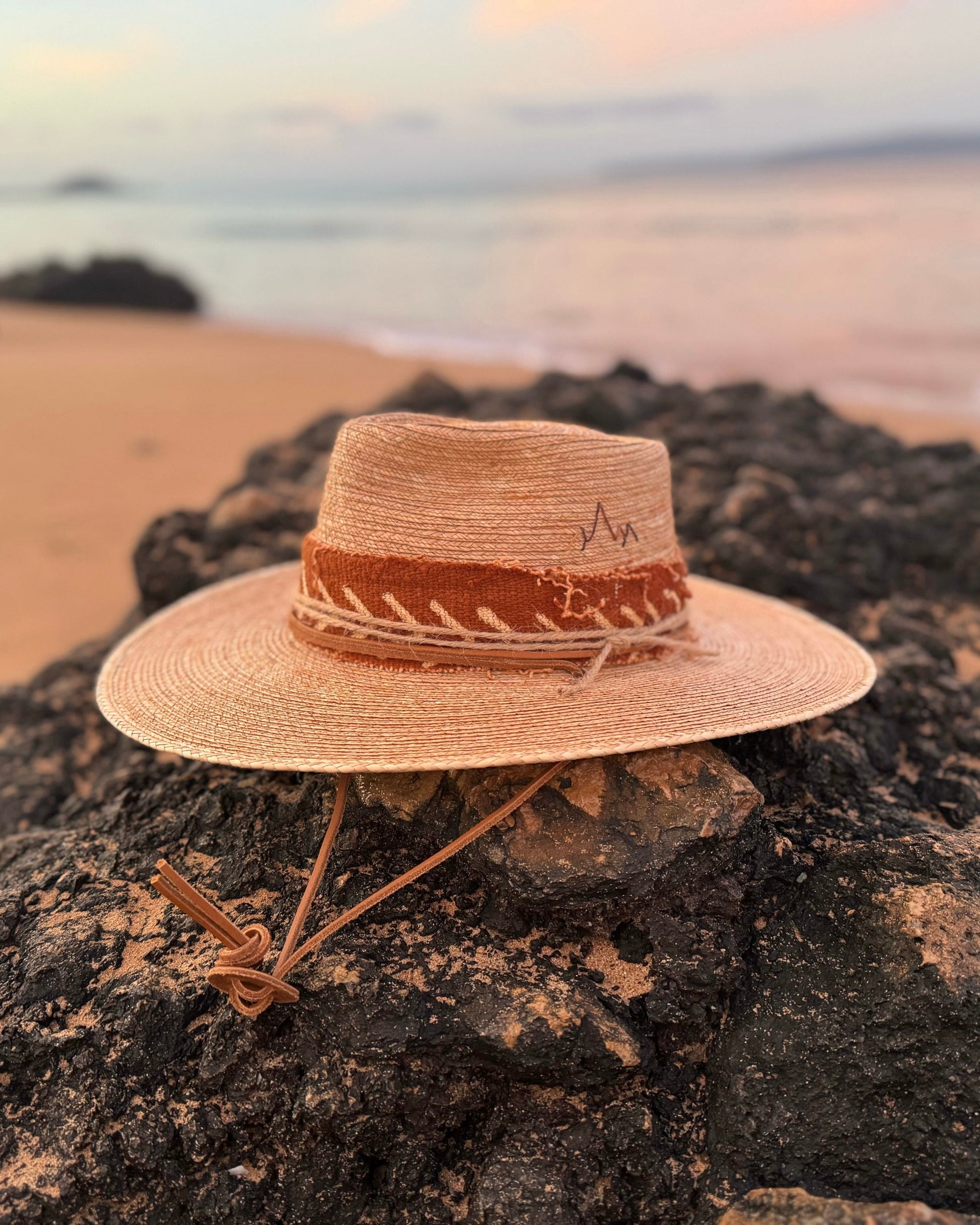 This season our hats are accented with indigo or rust mud cloth and twine accents.