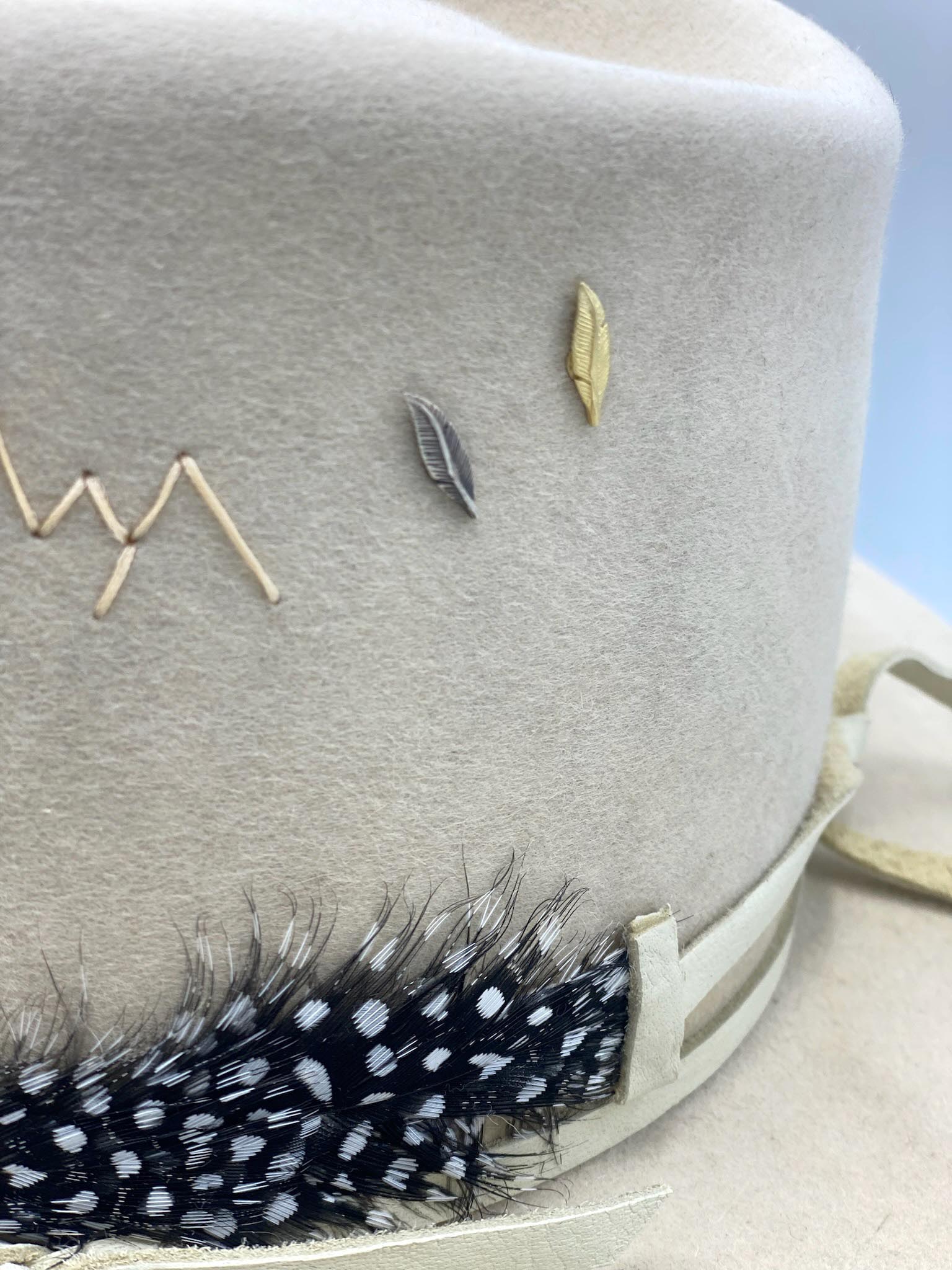Gold shard with dangling mother of pearl carved feather sold separately.