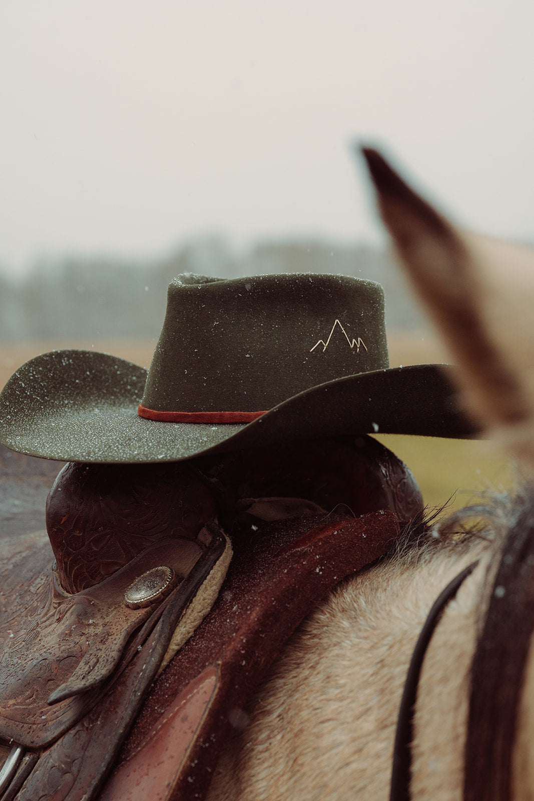 Teardrop crown, 3 3/4" tall with 4" brim width and flange.