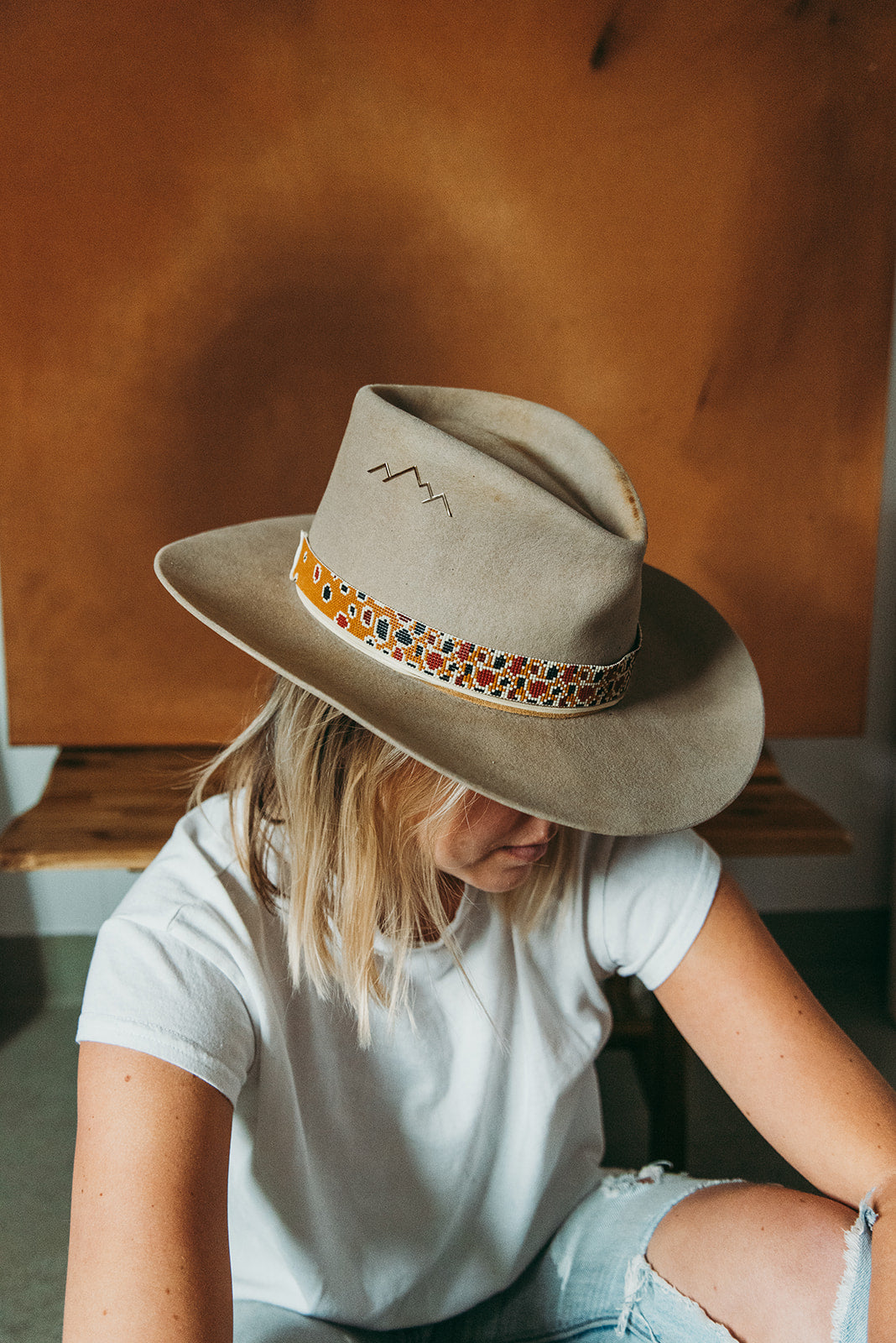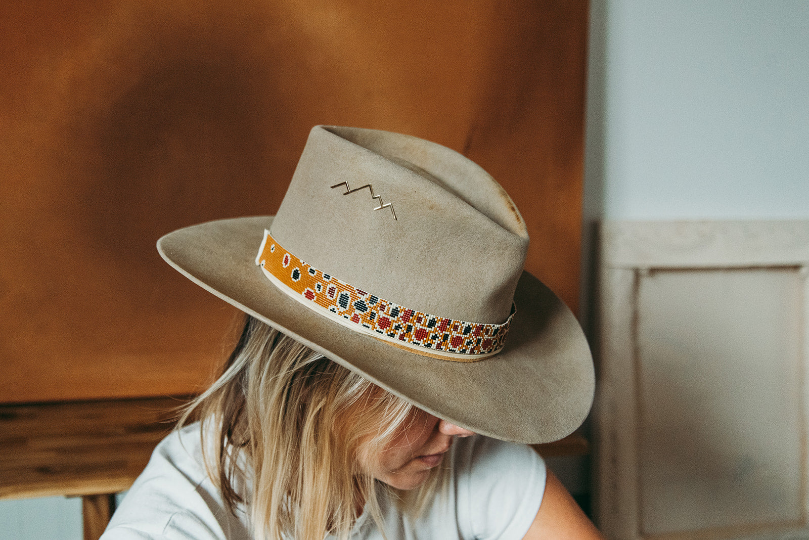 The pin adorns the hat and replaces our hand-stitched mountain.