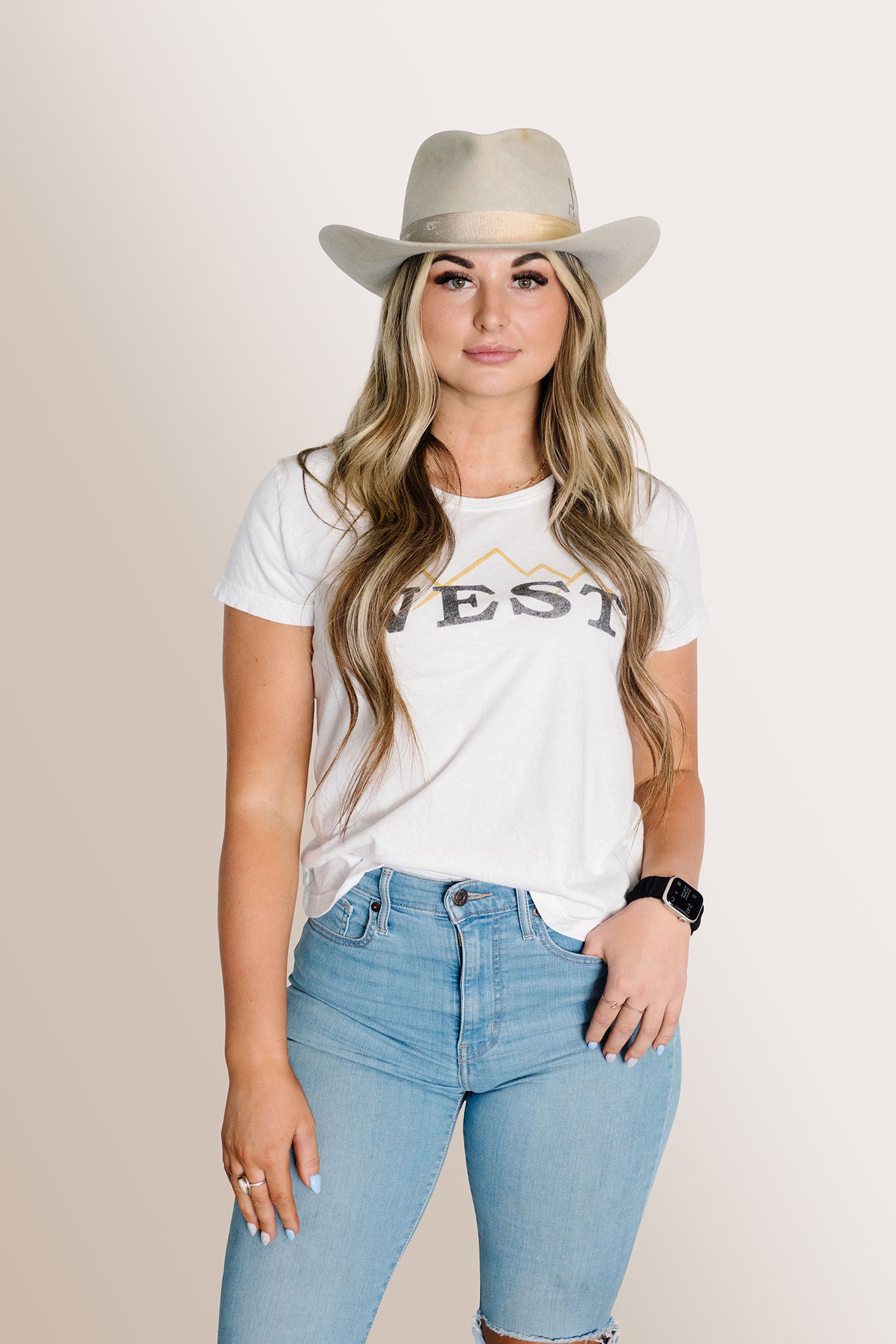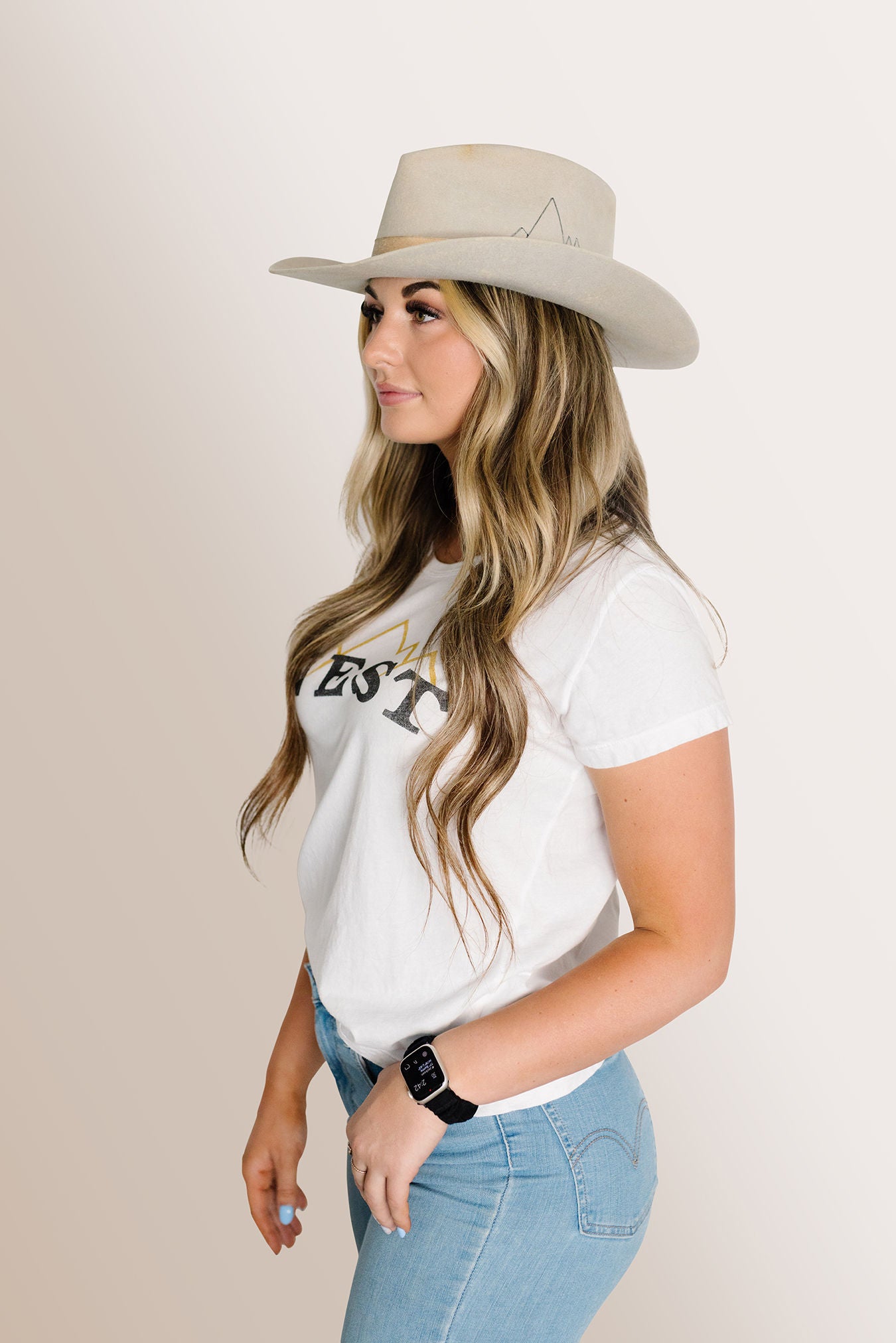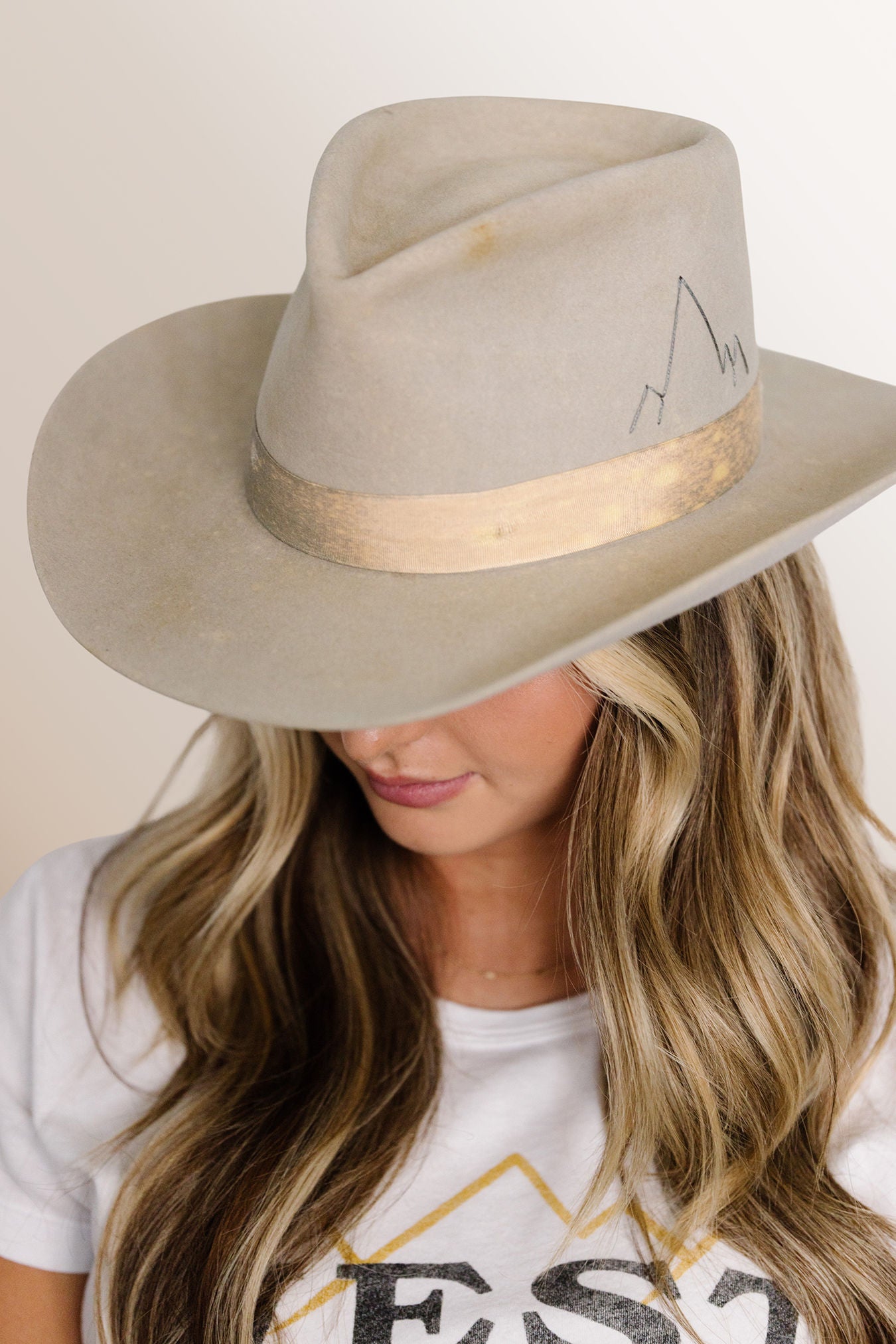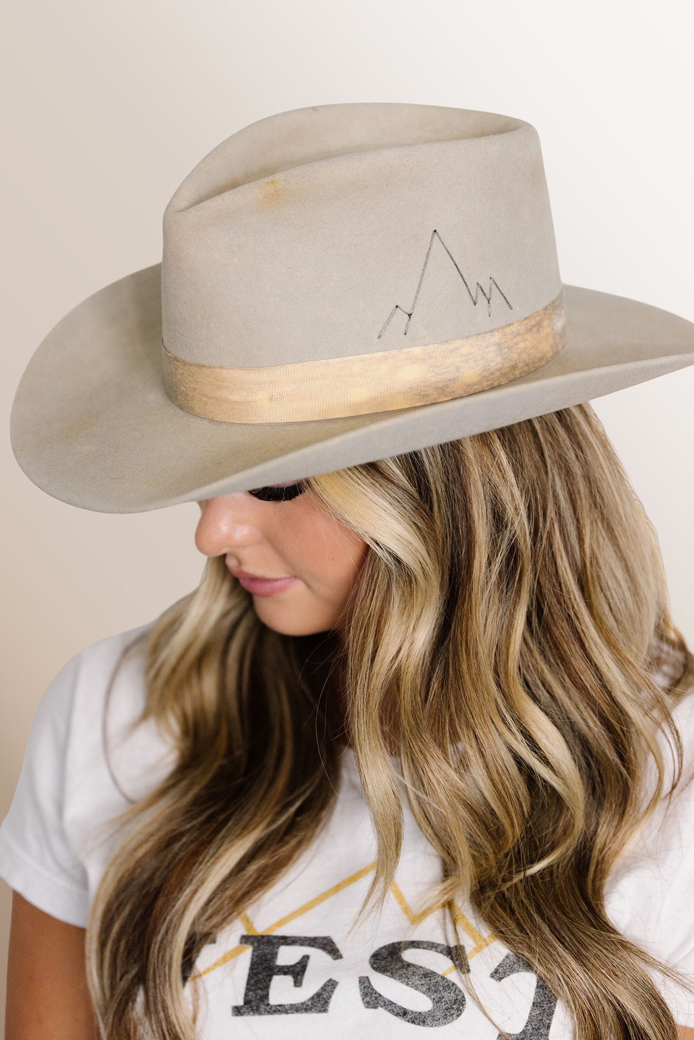 Teardrop crown and 3 1/4 inch brim with a western flange