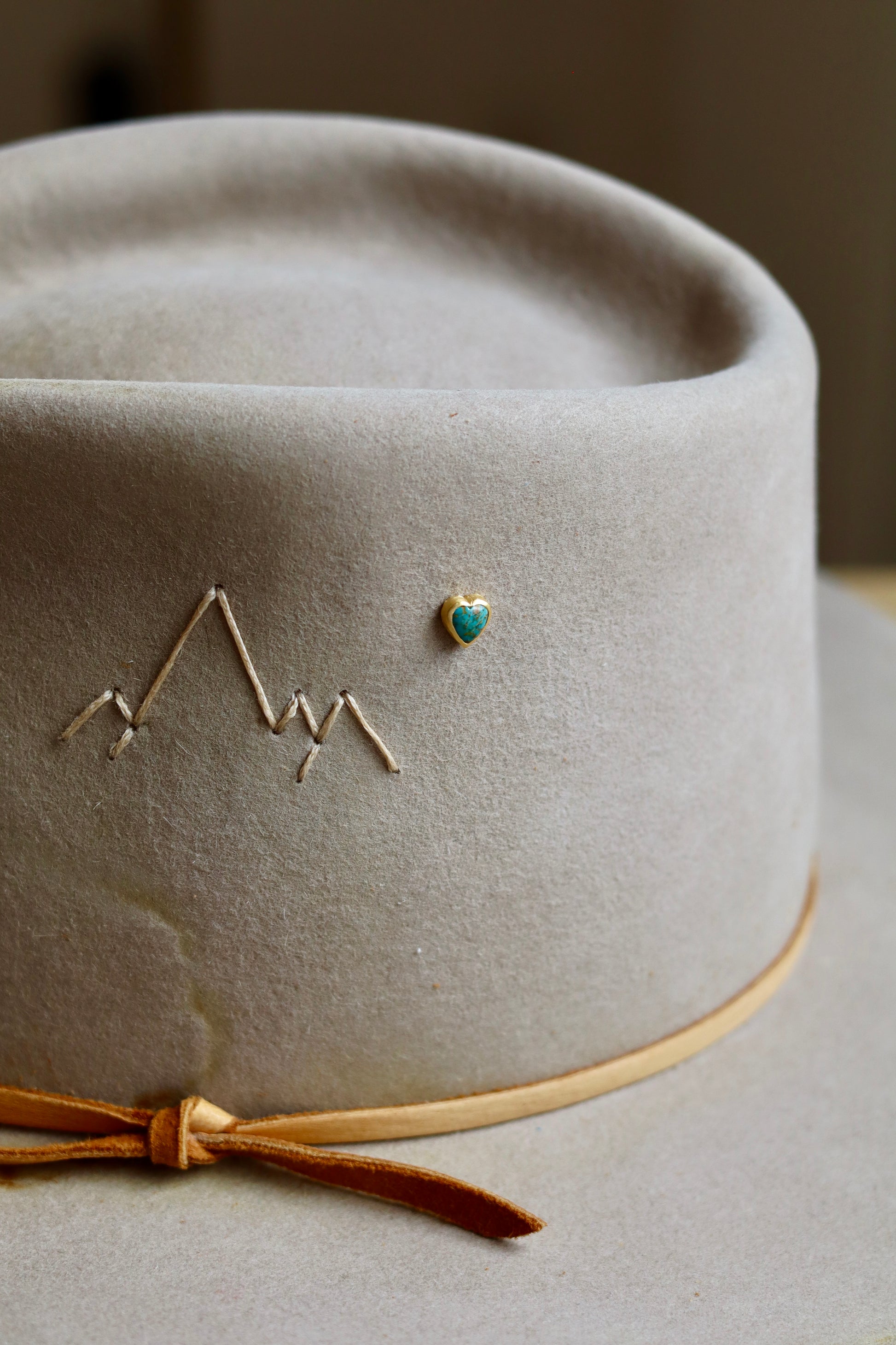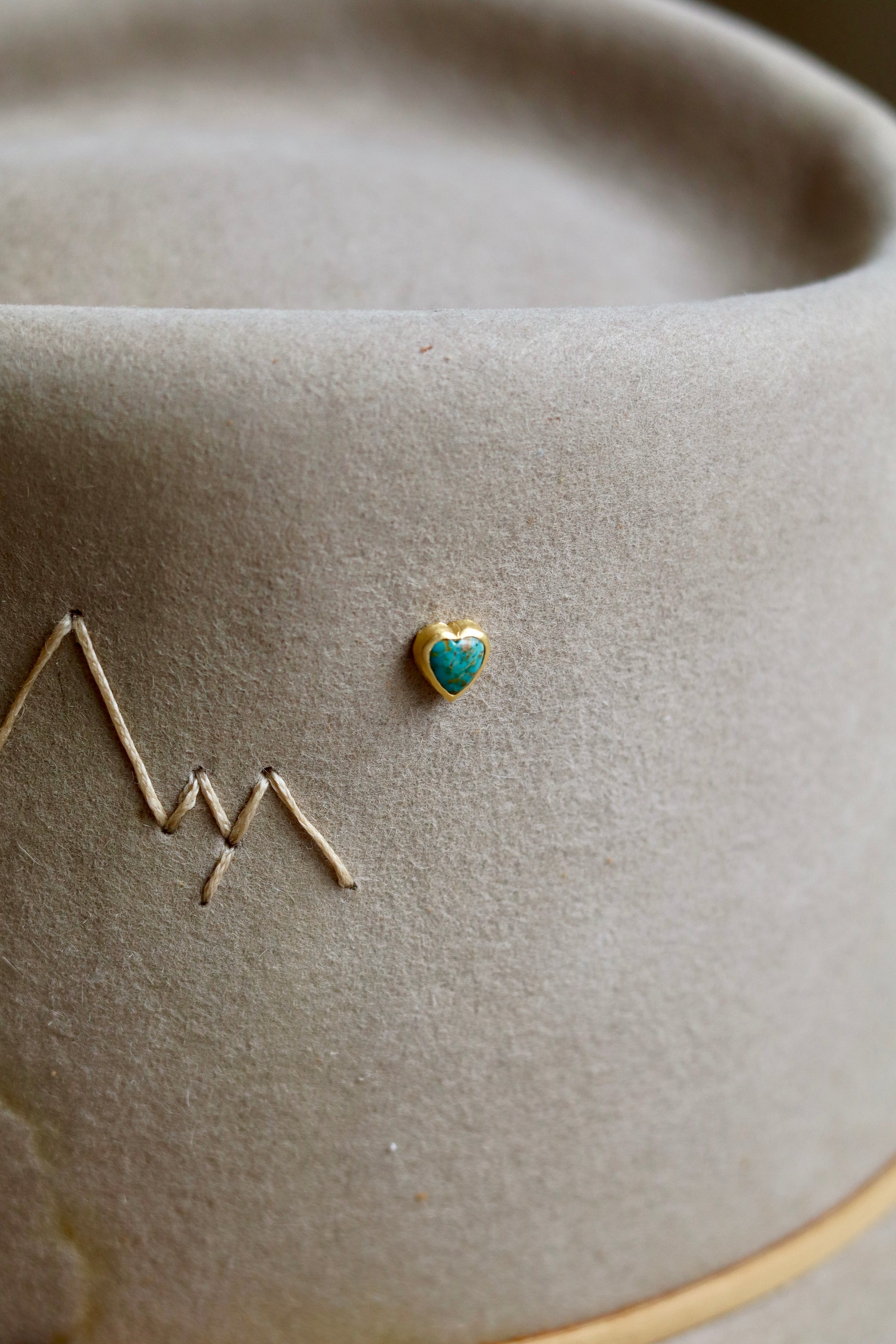 Turquoise heart hat pin in sterling silver or gold encasing.