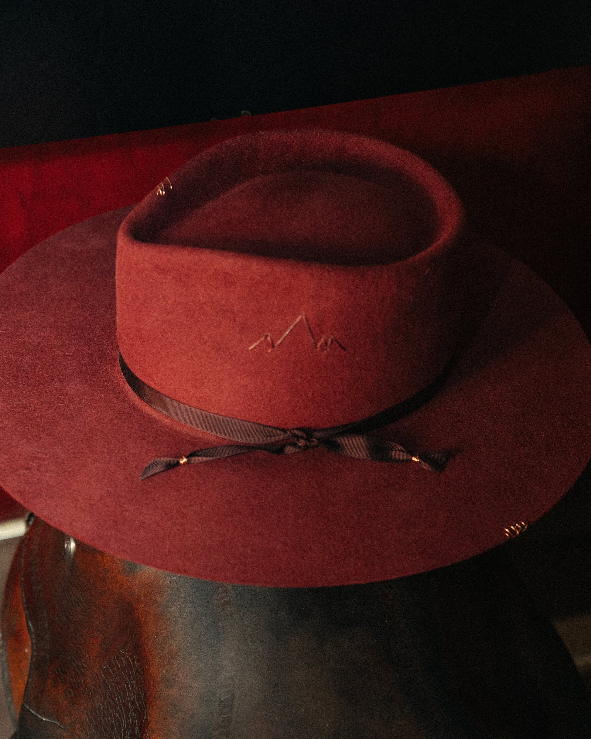 Burgundy hand stitched mountain detail