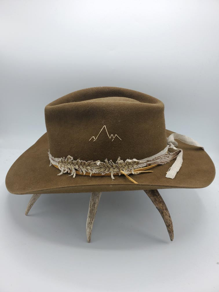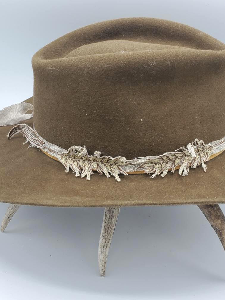 Embroidered band shown on Western 50x hat in whiskey with a western flange. Hat sold separately.